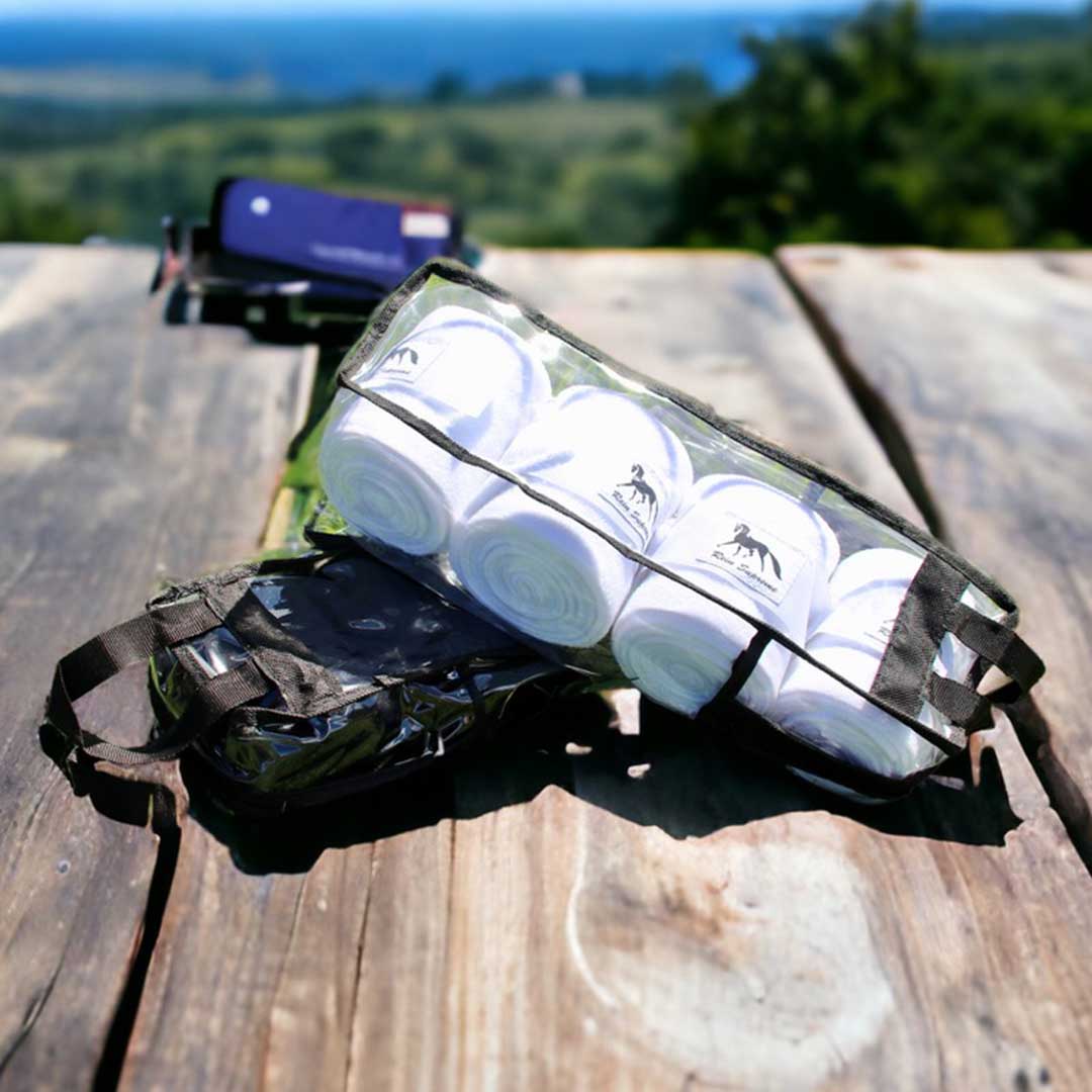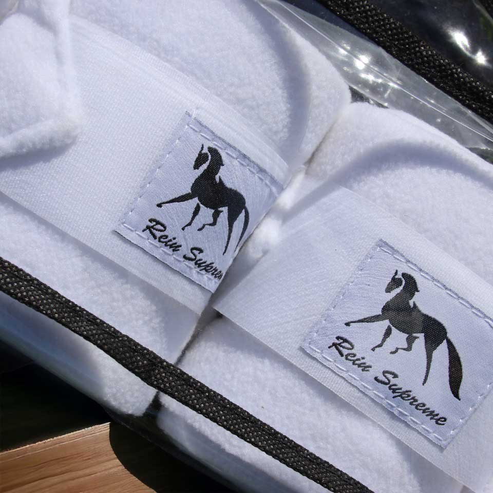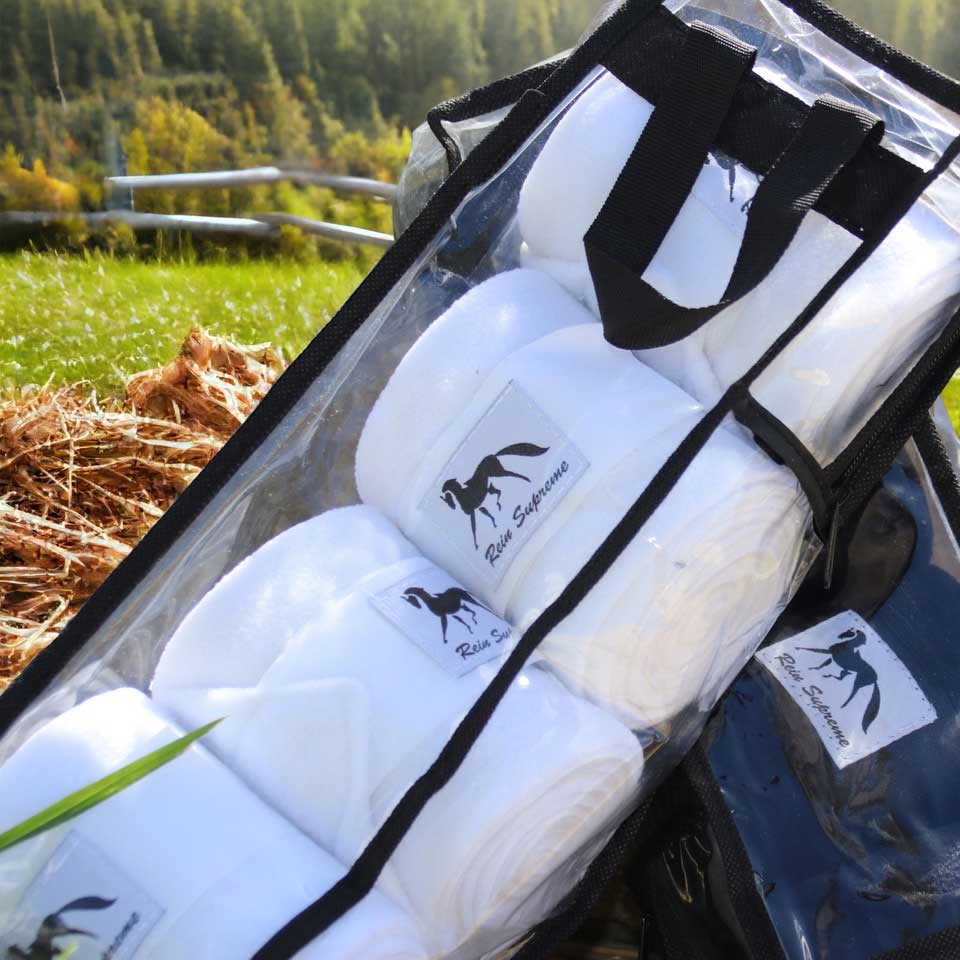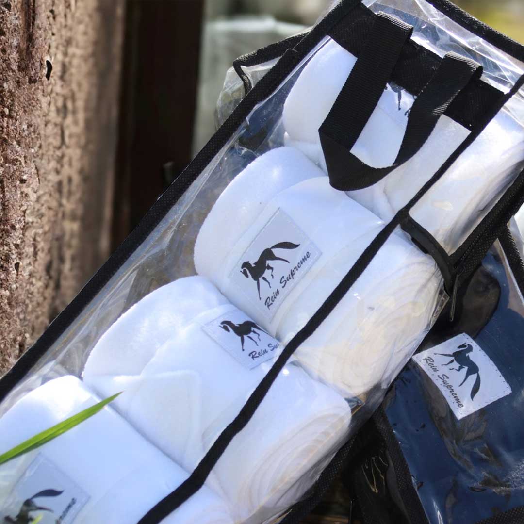 Rein Supreme Horse Leg Wraps are made with 280gm Fleece and come as a 4pcs/set in a neat and reusable Carry Bag. Available in Black or White
